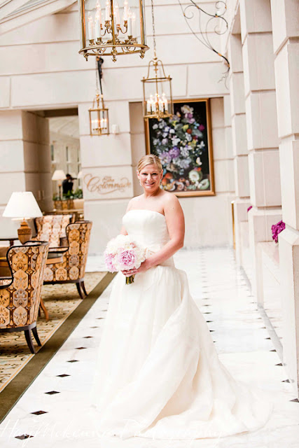 The Colonade positively gleamed with standing centerpieces of pink peonies and orchids. The arrangements were a delicate, subtle range of pinks, perfectly suited to the beautiful glass pavilion.